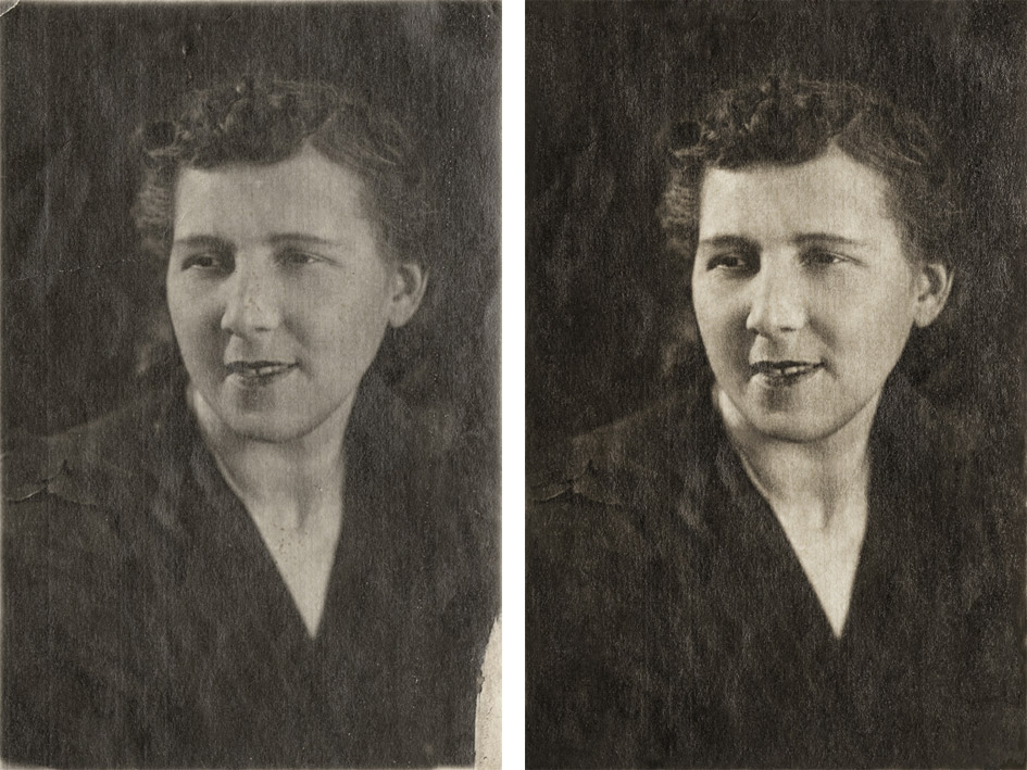 Здесь показаны образцы компьютерной обработки фотографий: - сканирование/оцифровка, коррекция плотности, яркости, контраста; цветокоррекция, тонирование и др. Ретушь и реставрация старых чёрно-белых и цветных фотографий: - удаление царапин, пятен, надломов, обрывов, порезов; коррекция, тонирование, вывод файла в печать Ретушь и обработка фотографий с цифровых фотоаппаратов или фотофайлов: - коррекция плотности, яркости, контраста, цвета; удаление прыщей, морщин и других дефектов кожи